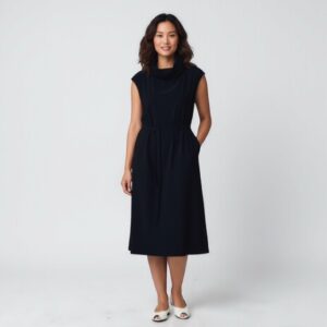 Das Kleid vereint moderne Eleganz mit mühelosem Komfort. Gefertigt in Europe aus leichtem, elastischem Technical Jersey, bietet es einen weich fallenden,