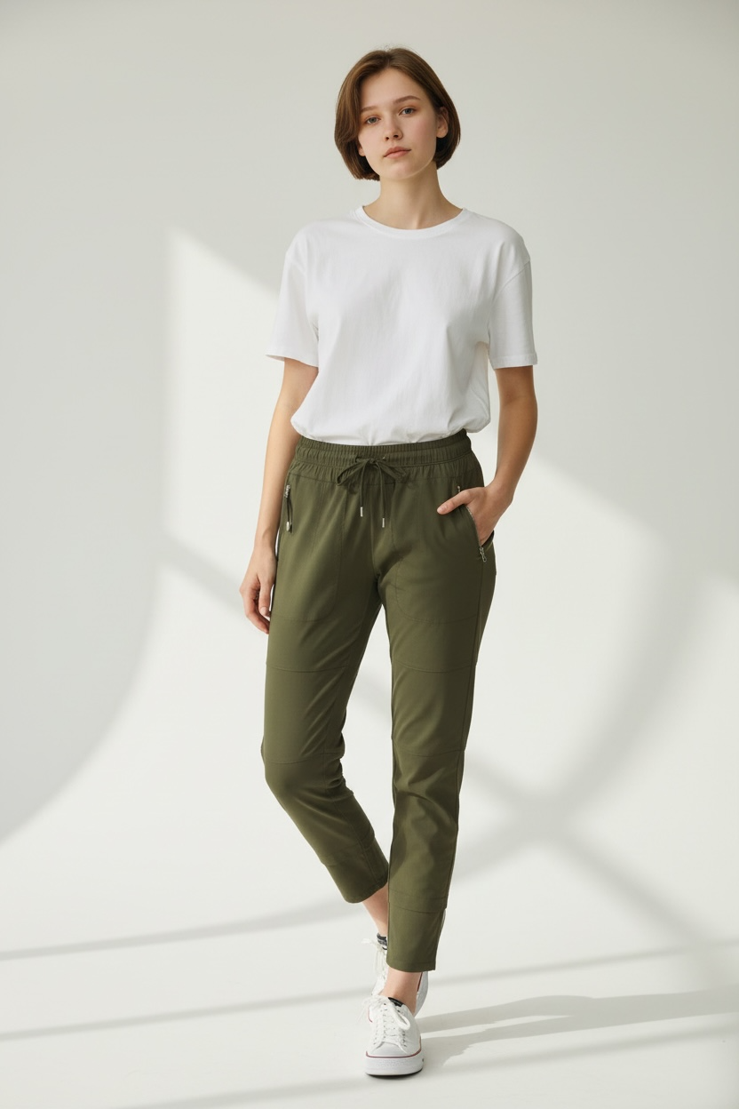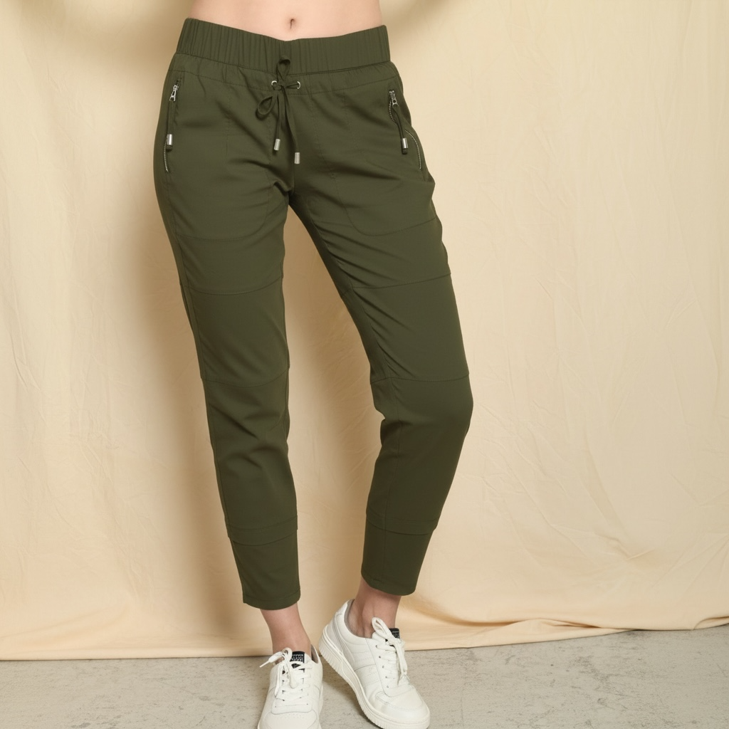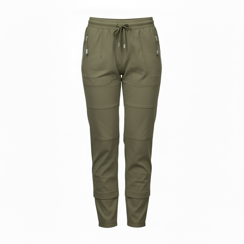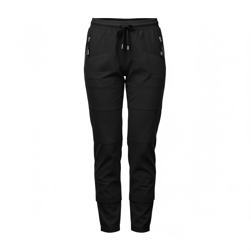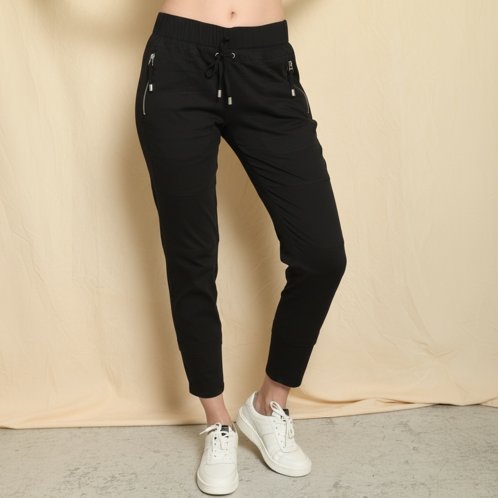 Die Jogger-Hose von Amber & Moon by Simclan vereint sportlichen Komfort mit einem modernen, urbanen Look. Der elastische Bund mit Kordelzug sorgt für den perfekten Sitz, während die praktischen Reißverschlusstaschen vorne einen coolen Detail-Moment setzen. Die charakteristischen Nahtdetails am Knie verleihen ihr einen sportlich-femininen Charakter. Ob für einen entspannten Stadtbummel, das Home-Office oder einen aktiven Tag, diese Hose ist dein perfekter Begleiter für jeden Anlass.