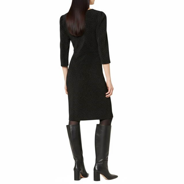 Beschreibung: Gerader Schnitt, U-Boot-Ausschnitt und 3/4-Ärmel mit elastischen Enden sorgen für eine stilvolle, moderne Silhouette. Die ungefütterte Verarbeitung macht das Kleid angenehm leicht, während Glitzergarn und die strukturierte Haptik einen edlen, festlichen Akzent setzen. Perfekt für besondere Momente, in denen ein eleganter Auftritt gefragt ist.