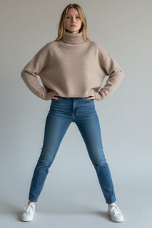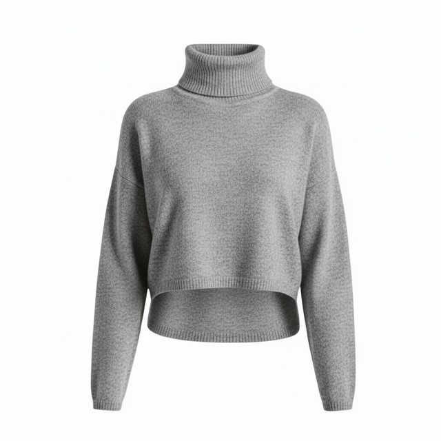 Bestellung: Kurzer Rollkragenpullover aus 100 % Merinowolle – ideal für High-Waist-Outfits