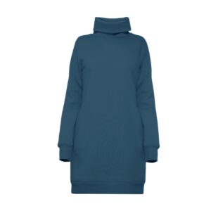 Der Rollkragen verleiht dem Kleid eine stylishe Note, während die Länge circa handbreit über dem Knie es besonders vielseitig macht: Sie können es problemlos mit Leggings oder Strumpfhosen kombinieren. Aber auch mit schmalen Hosen, Stiefeln, Sneakern oder kuscheligen Hausschuhen wird das Kleid zum Allrounder für jeden Look.