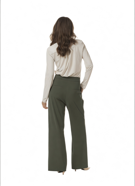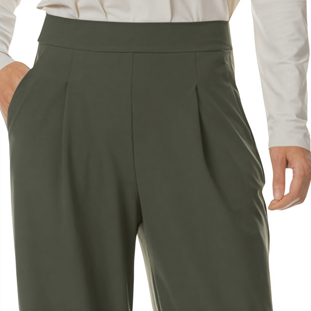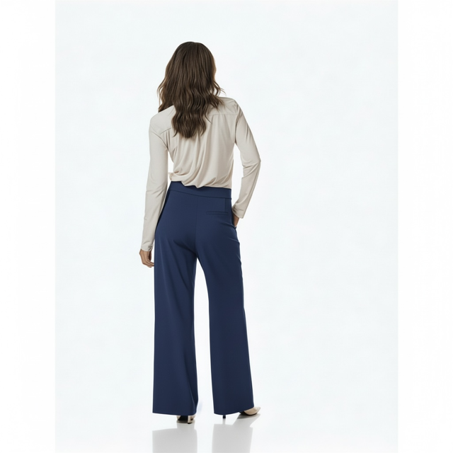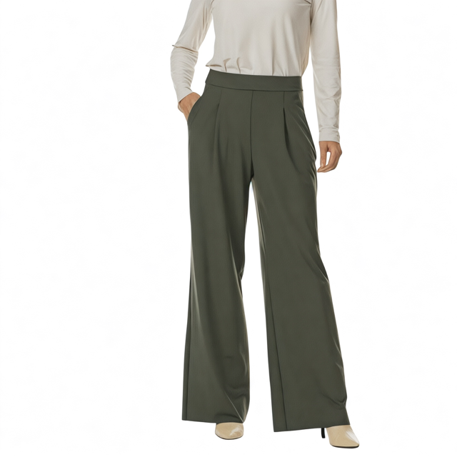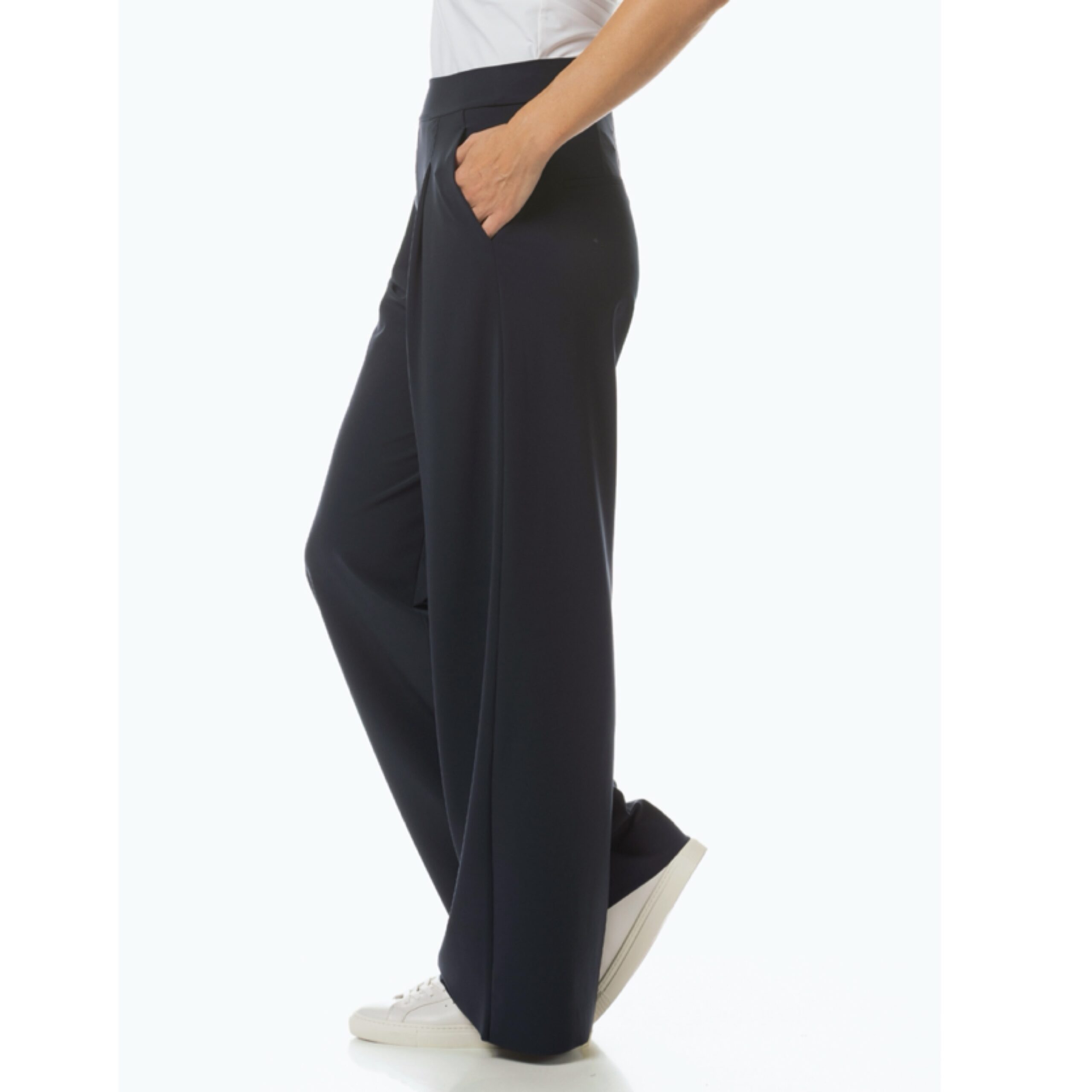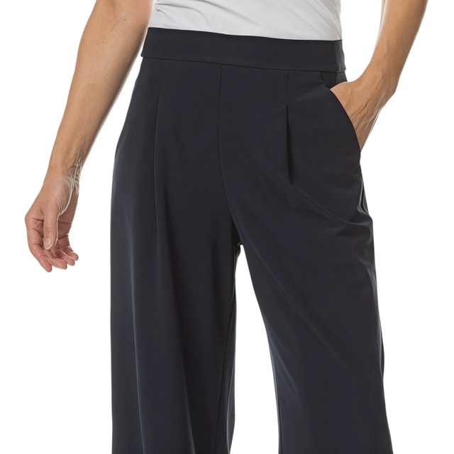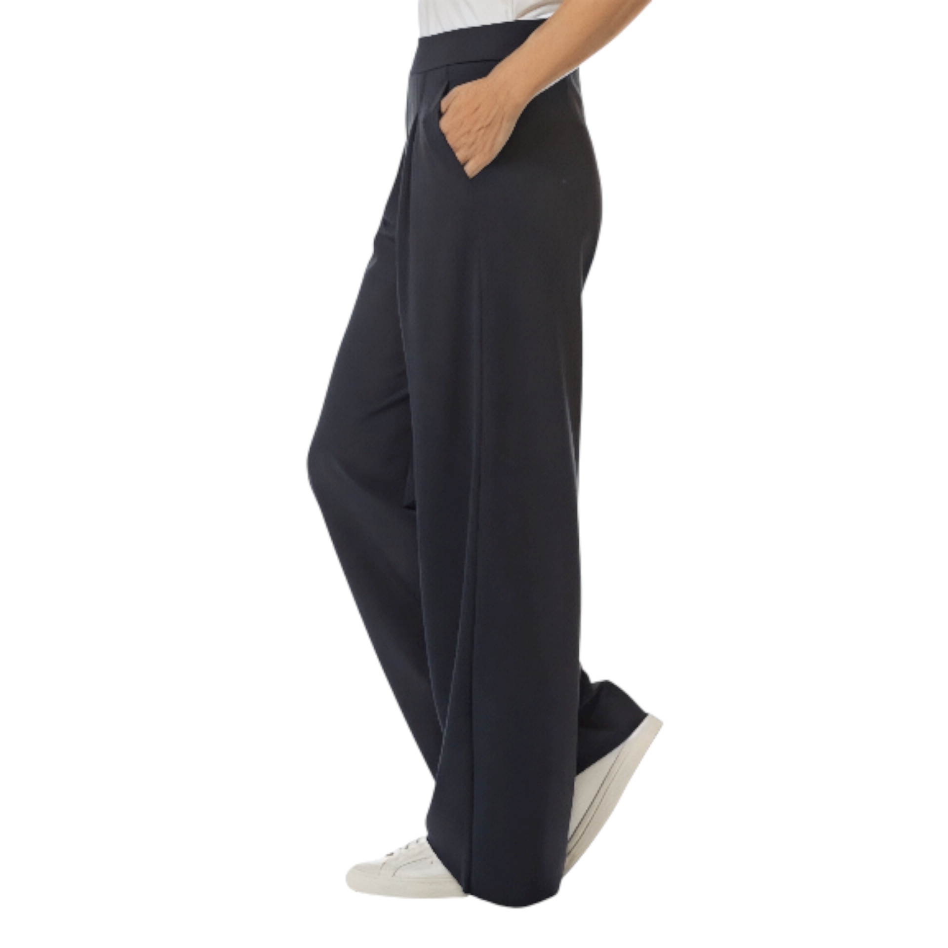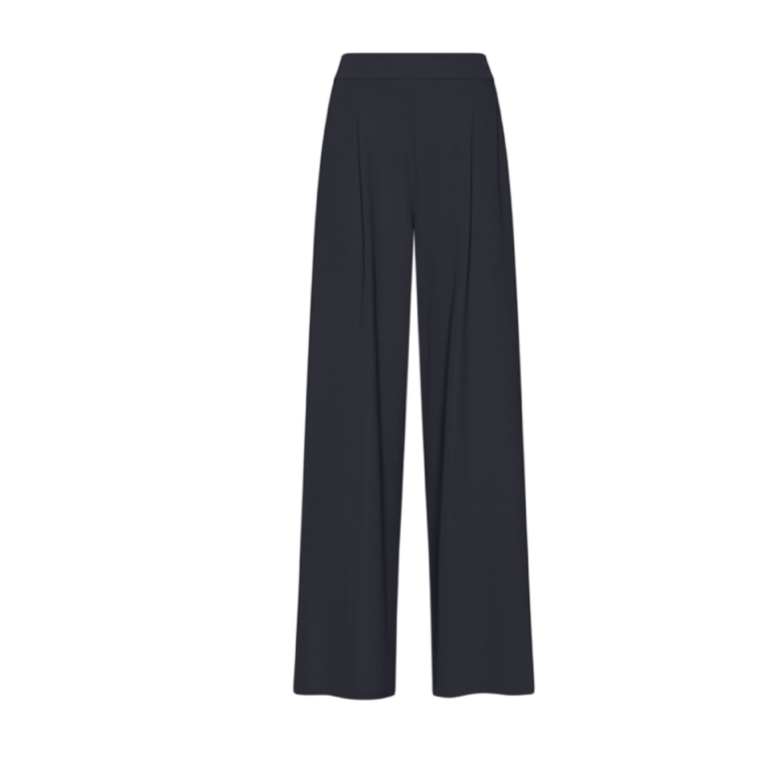 Gefertigt aus hochwertigem Comfort Travel Jersey schmiegt sie sich angenehm an und überzeugt mit einem eleganten, fließenden Fall. Die hohe Taille, der breite Bund und die sanften Falten im Vorderteil formen eine feminine, schmeichelhafte Silhouette – perfekt für Looks mit Klasse und Leichtigkeit.
