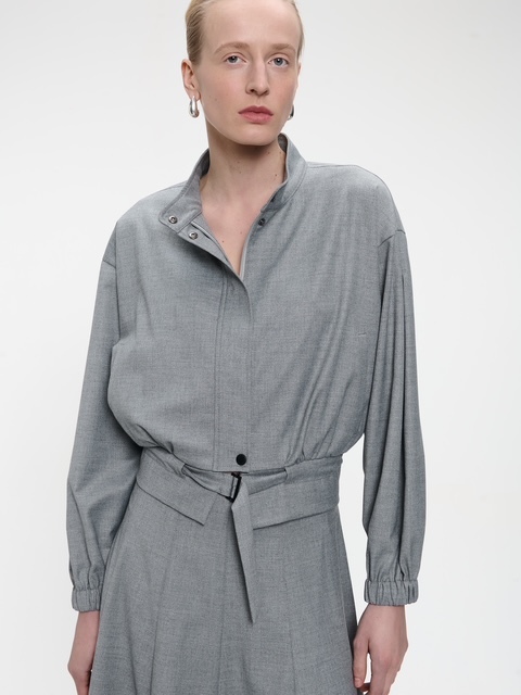 Der Hemdkragen, die verdeckte Knopfleiste und der abnehmbare Taillengürtel ermöglichen unterschiedliche Stylingoptionen