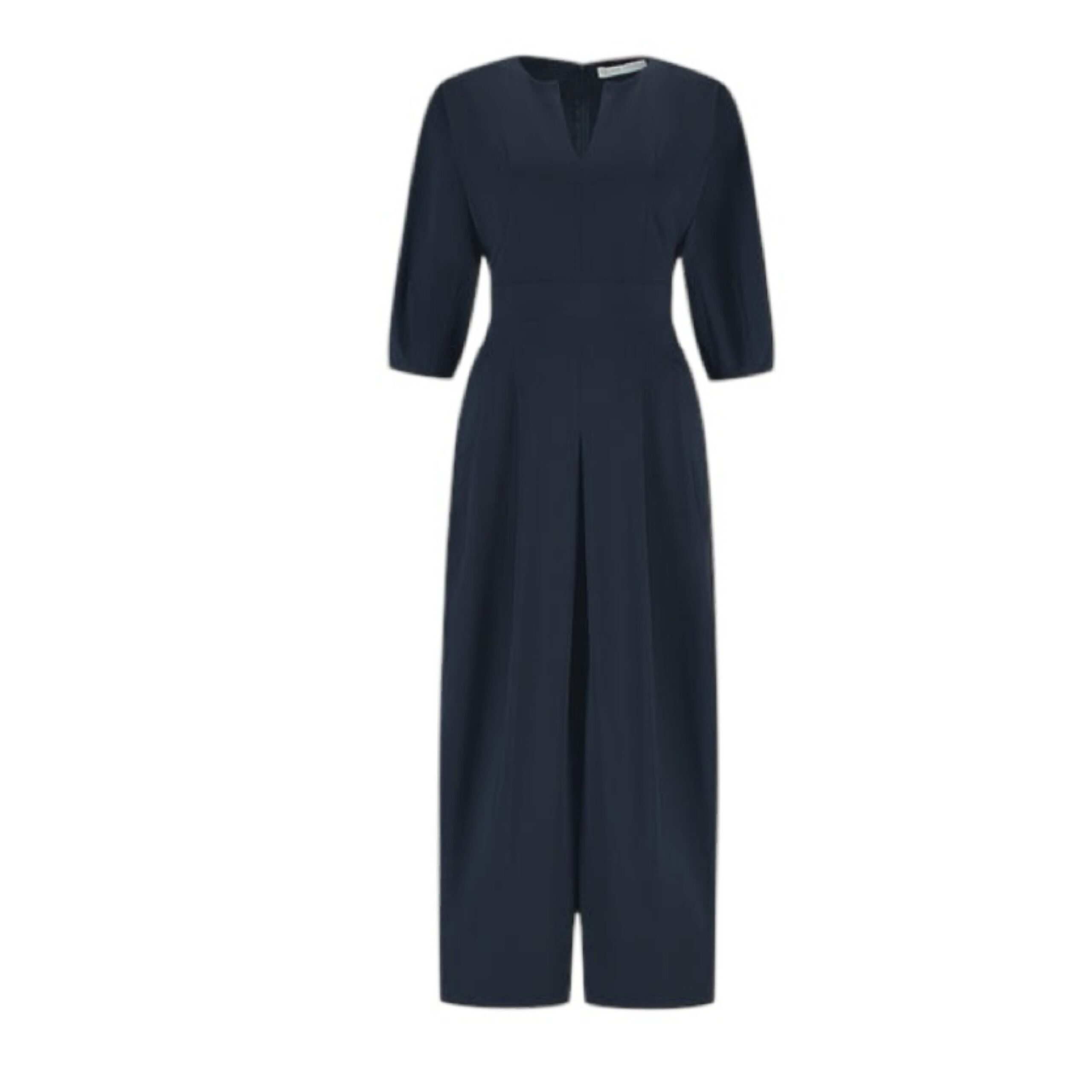 Die klare, strukturierte Silhouette wird durch einen femininen V-Ausschnitt und elegante 3/4-Ärmel unterstrichen.