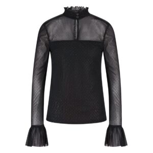 Der zarte Salatkragen und die feinen Bündchen setzen verspielte Akzente und machen dieses Top zum perfekten Begleiter.