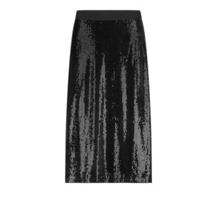 Vollständig mit schwarz, schimmernden Pailletten verziert, fängt dieser Rock das Licht bei jeder Bewegung ein und verleiht Ihrem Look sofort festliche Eleganz.