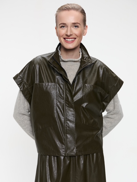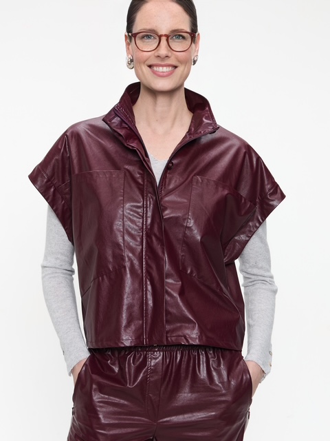 Setze ein Statement: Die Kara Eco-Leder-Bluse bringt modernen Edge in jede Garderobe. Das ärmellose Design mit hohem Stehkragen,