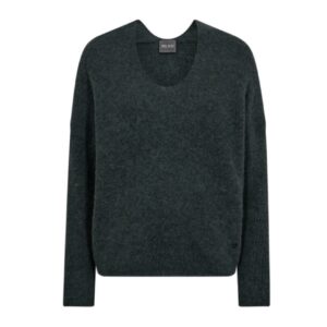 Der tiefe, schmeichelhafte V-Ausschnitt und die lockere Passform machen ihn vielseitig kombinierbar – ob lässig zu Jeans oder elegant als Layering über einem Kleid.