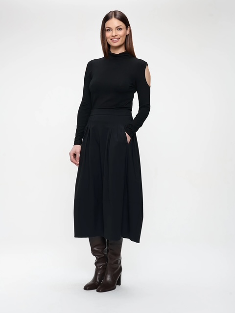Aus hochwertigem Technical Jersey gefertigt, überzeugt er mit einer langen, femininen Silhouette und einer raffinierten, leicht ballonartigen Passform.