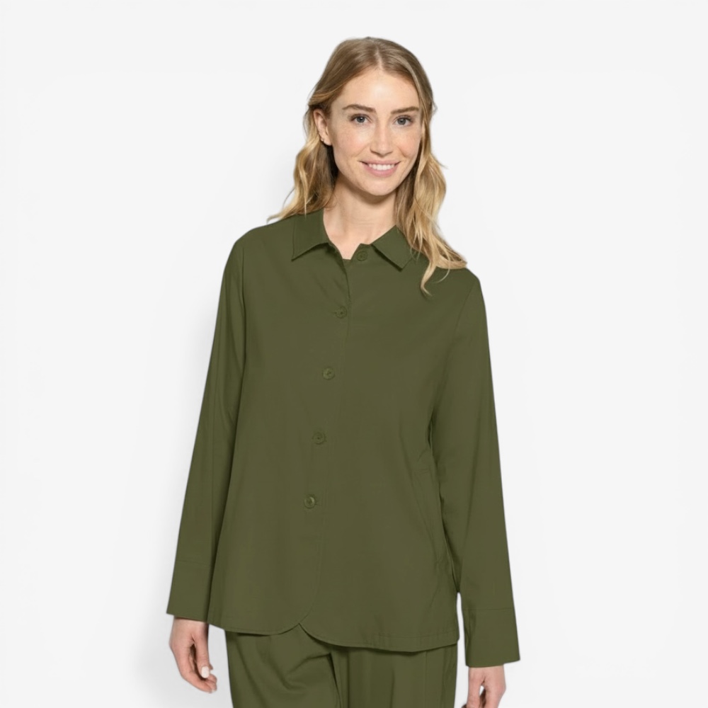 Produktbeschreibung: Diese Jacke mit Kragen von Vetono ist dein neues Lieblingsstück für jeden Anlass. Der klassische Hemdkragen und die lockere, fließende Silhouette machen sie zum vielseitigen Alltagsbegleiter, der sich mühelos von der Arbeit bis zum Abendessen trägt. Die Knopfleiste vorne sorgt für einen cleanen, gepflegten Look, während der leicht gerundete Saum eine feminine Note setzt. Das hochwertige Stretch-Material aus liegt angenehm auf der Haut, behält seine Form und lässt dich den ganzen Tag frei bewegen.