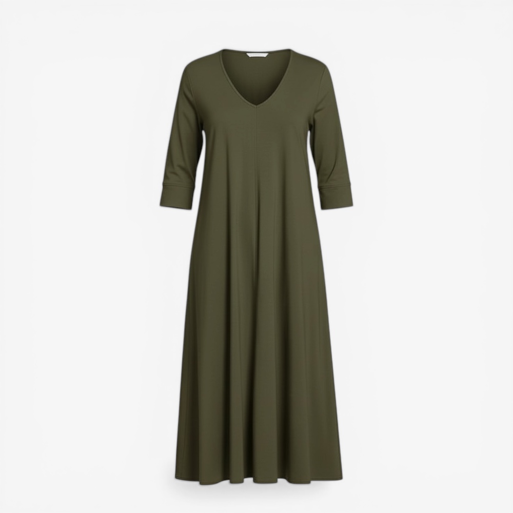 Ein Kleid, das sich anfühlt wie eine zweite Haut, und trotzdem so elegant ist, dass du dich überall wohlfühlst. Das Midi-Kleid von Vetono in sattem Oliv ist der perfekte Begleiter für alle, die Stil und Komfort nicht trennen wollen.