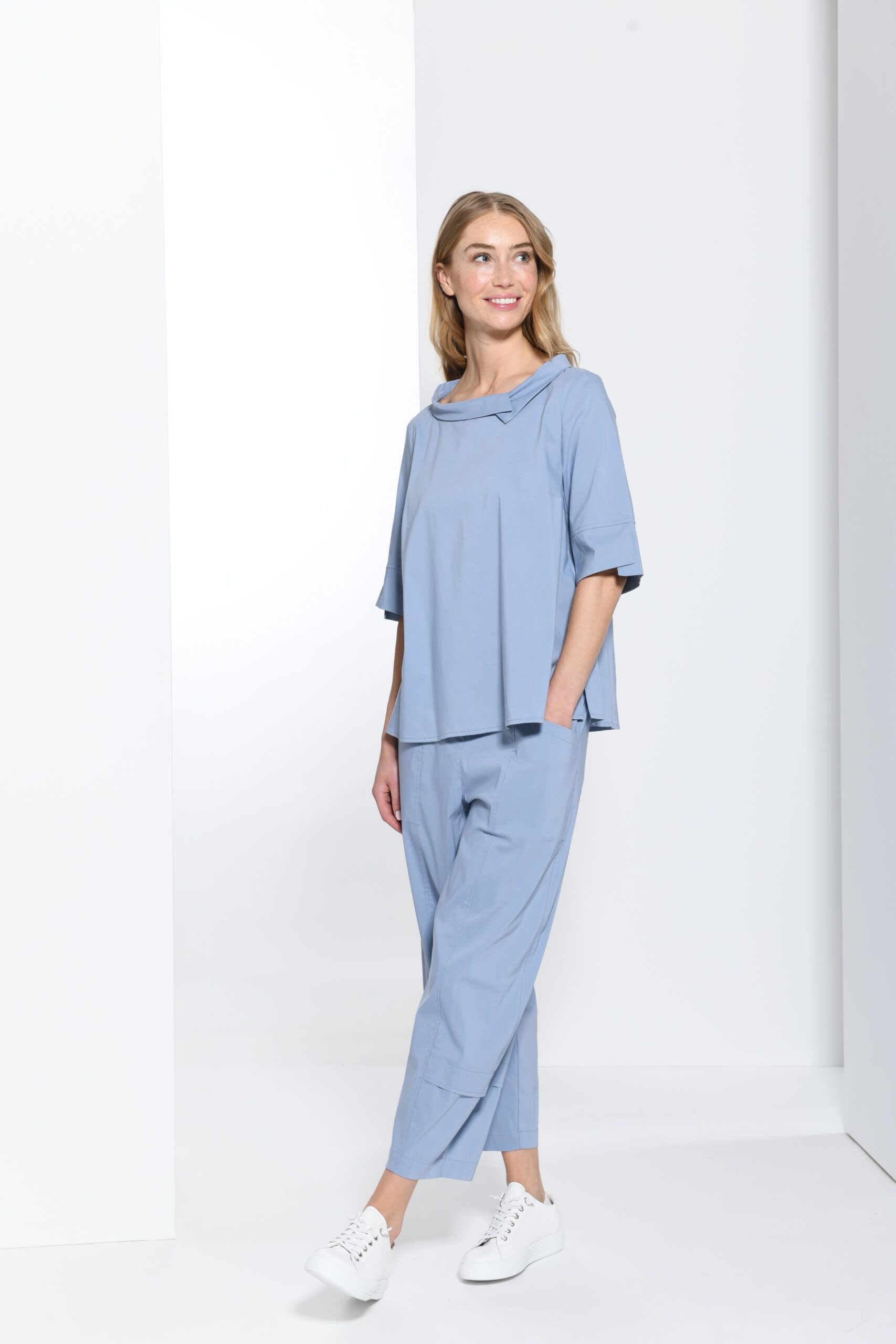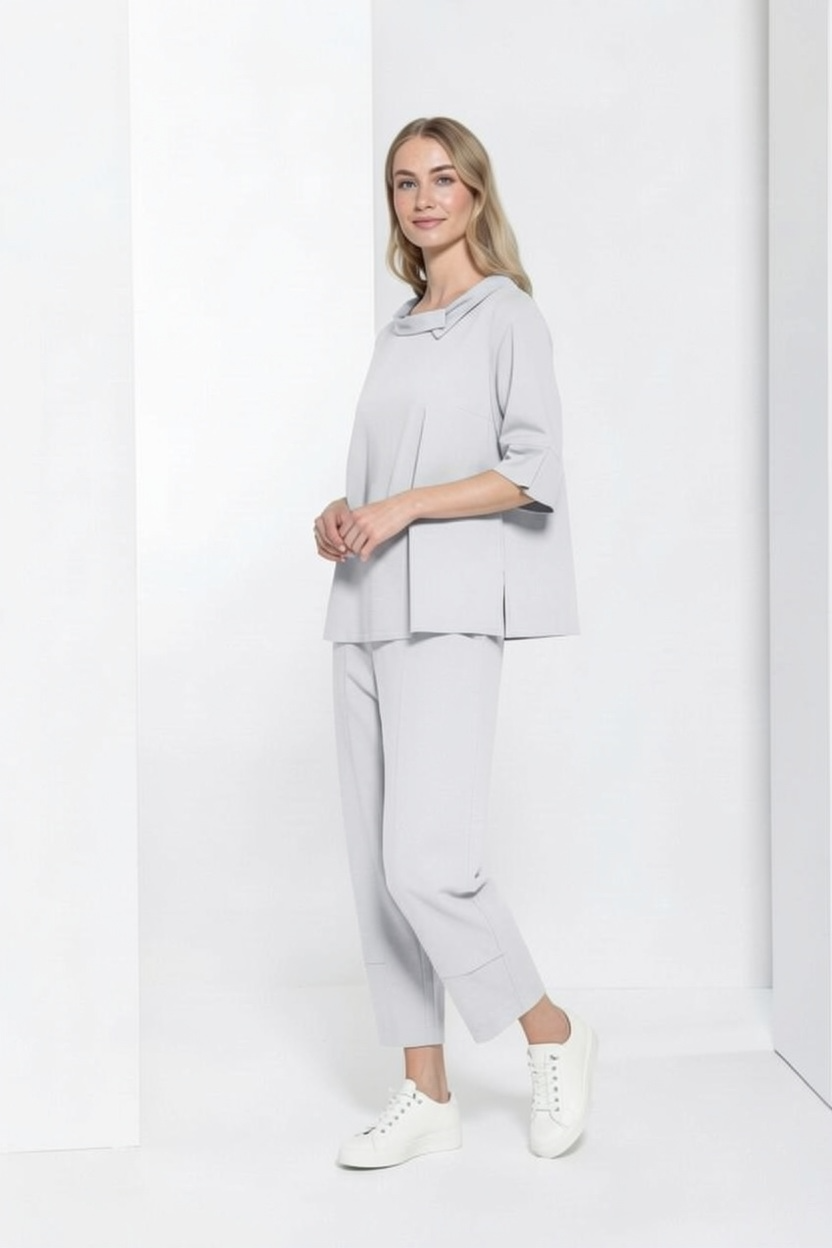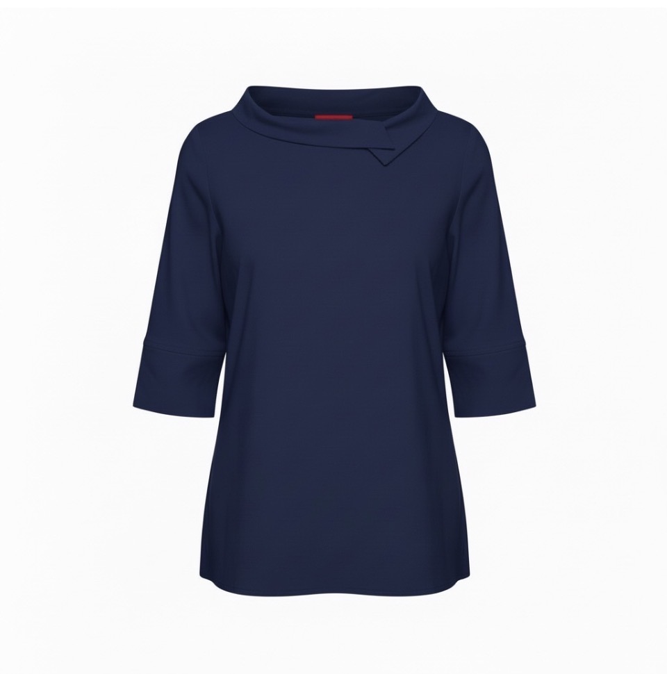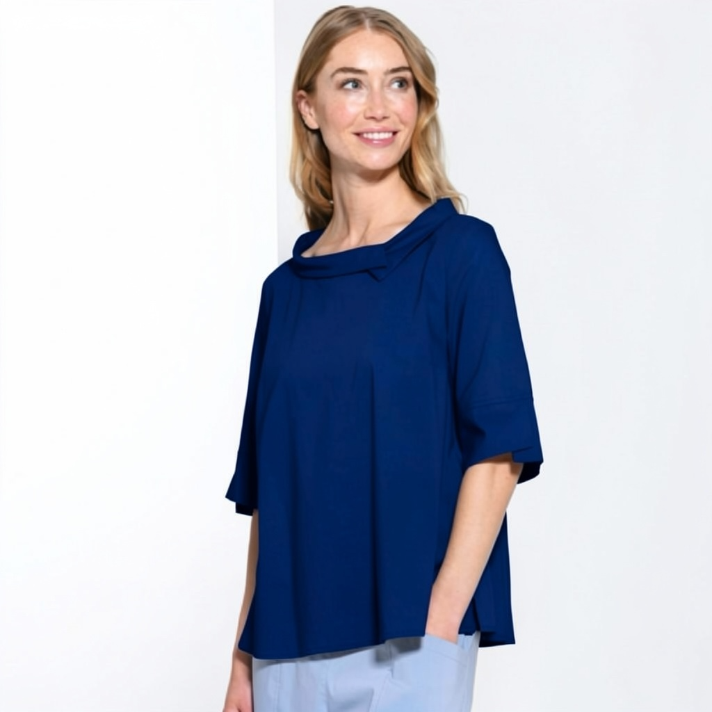 Diese lässig-elegante Bluse überzeugt durch ihr entspanntes Oversize-Schnitt und den charakteristischen, leicht umgelegten Rollkragen, der einen modernen und zugleich weichen Look verleiht. Eine dezente Faltenlegung an der Vorderseite sorgt für eine angenehme Weite und fließende Silhouette, die sich jeder Körperform schmeichelt.