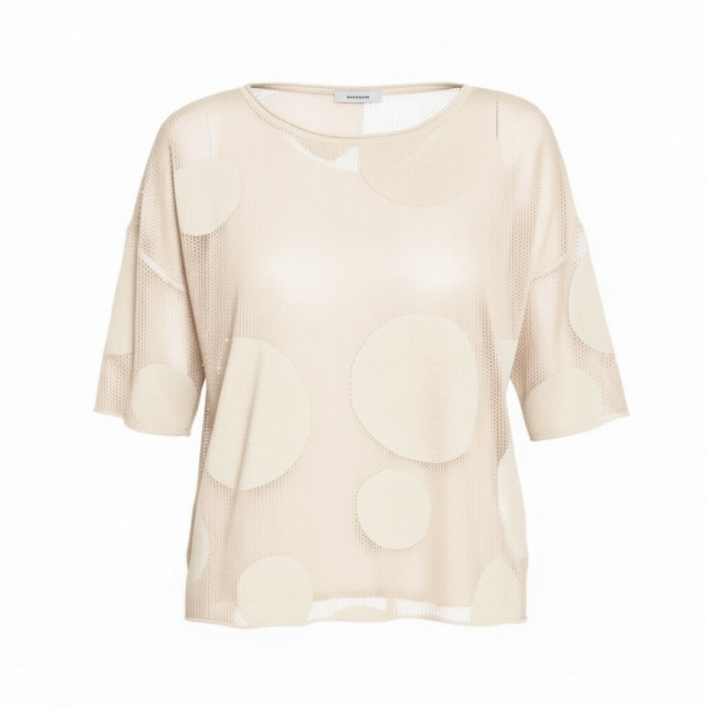 Dieser moderne Pullover überzeugt mit einem entspannten Schnitt und einem stilvollen Punktemuster. Der klassische Rundhalsausschnitt und die überschnittenen Ärmel unterstreichen den lässigen Look und sorgen für eine bequeme Passform. Die feine Strickstruktur wirkt leicht und luftig und macht das Modell zum idealen Begleiter für wärmere Tage.