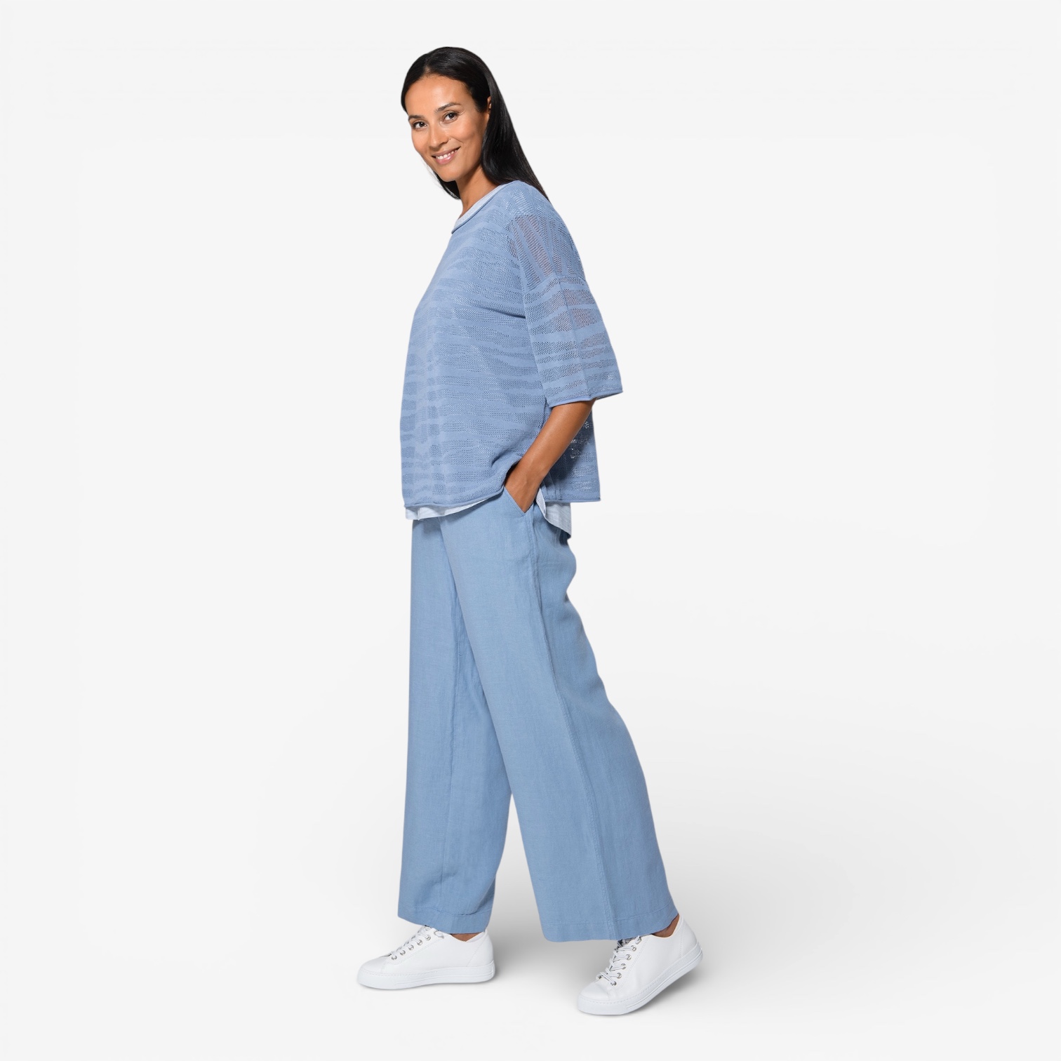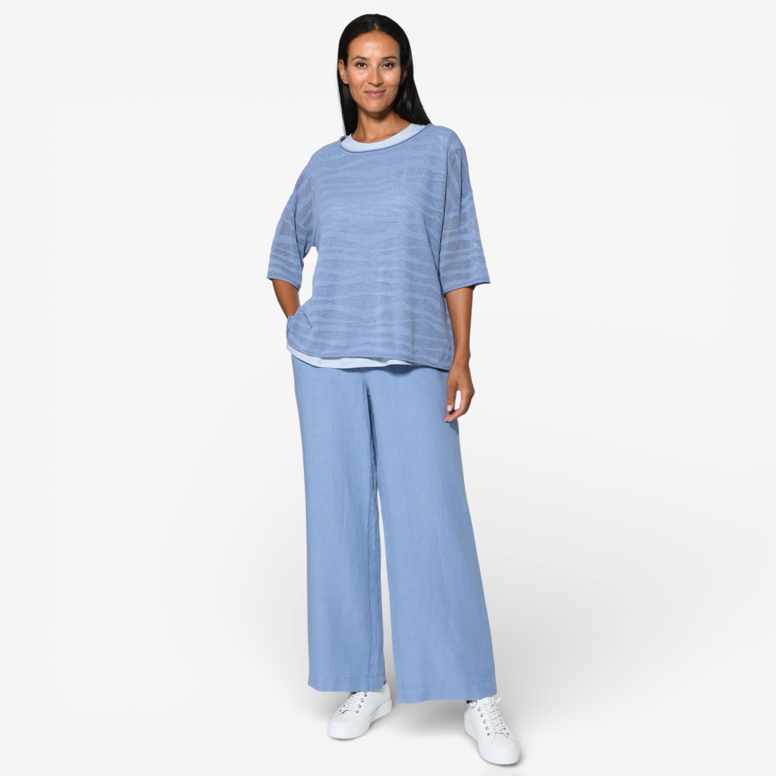 Durch den lockeren Schnitt fällt der Pullover besonders schön und lässt sich sowohl zu Jeans als auch zu weiten Hosen oder Röcken kombinieren. Ideal für einen unkomplizierten, stilvollen Look.