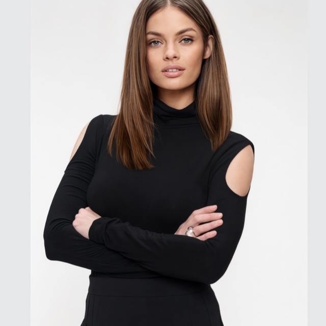 Beschreibung: Dieses Viskose-Top umschmeichelt deine Silhouette mit einer eleganten, schmalen Linie. Der kunstvolle Cut-out am Oberarm verleiht dem Klassiker ein modernes Upgrade – subtil, aber mit Wow-Effekt.